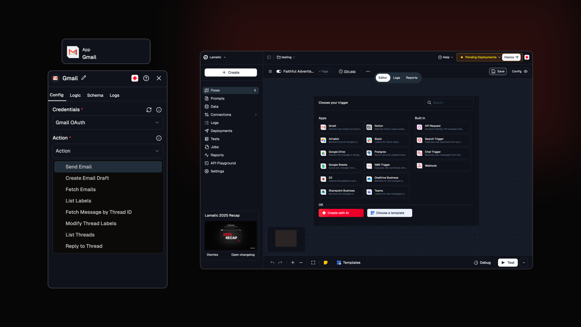 Weβve expanded our collection of pre-built Lamatic flows and templates to help you ship faster. Deploy powerful workflows in a single click and customize them to fit your use case.