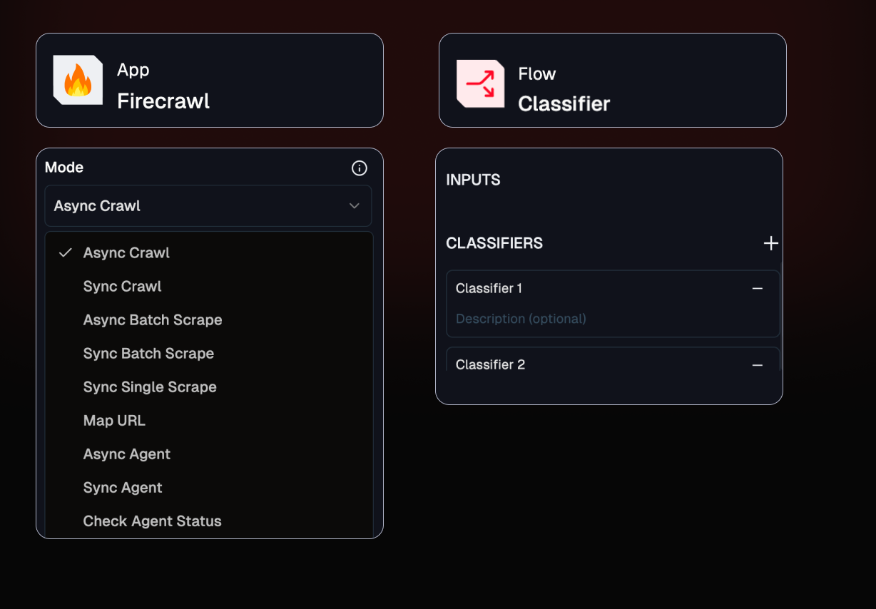 Enhanced flow clarity through Classifier node improvements, and powerful autonomous capabilities with Agent Mode support in the Firecrawl integration