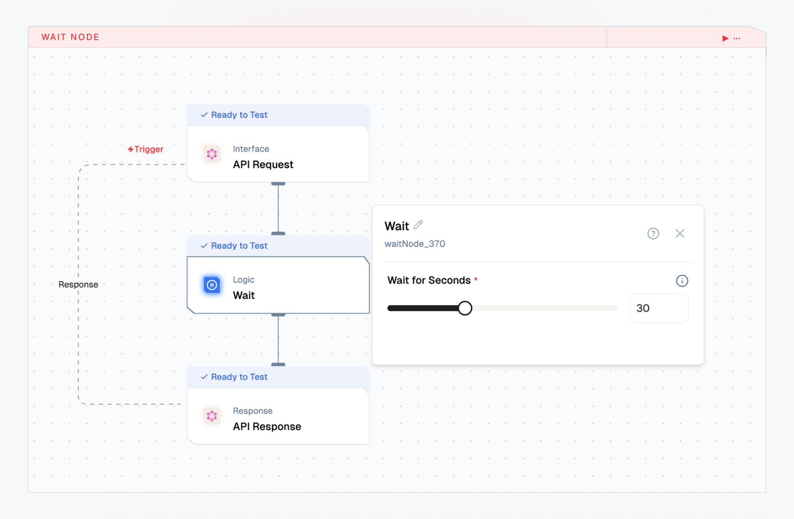 We’re thrilled to introduce the Wait Node, designed to add a customizable delay (1–90 seconds) in your flow execution. This is ideal for managing rate limits, sequencing dependent actions, or introducing strategic pauses between steps.