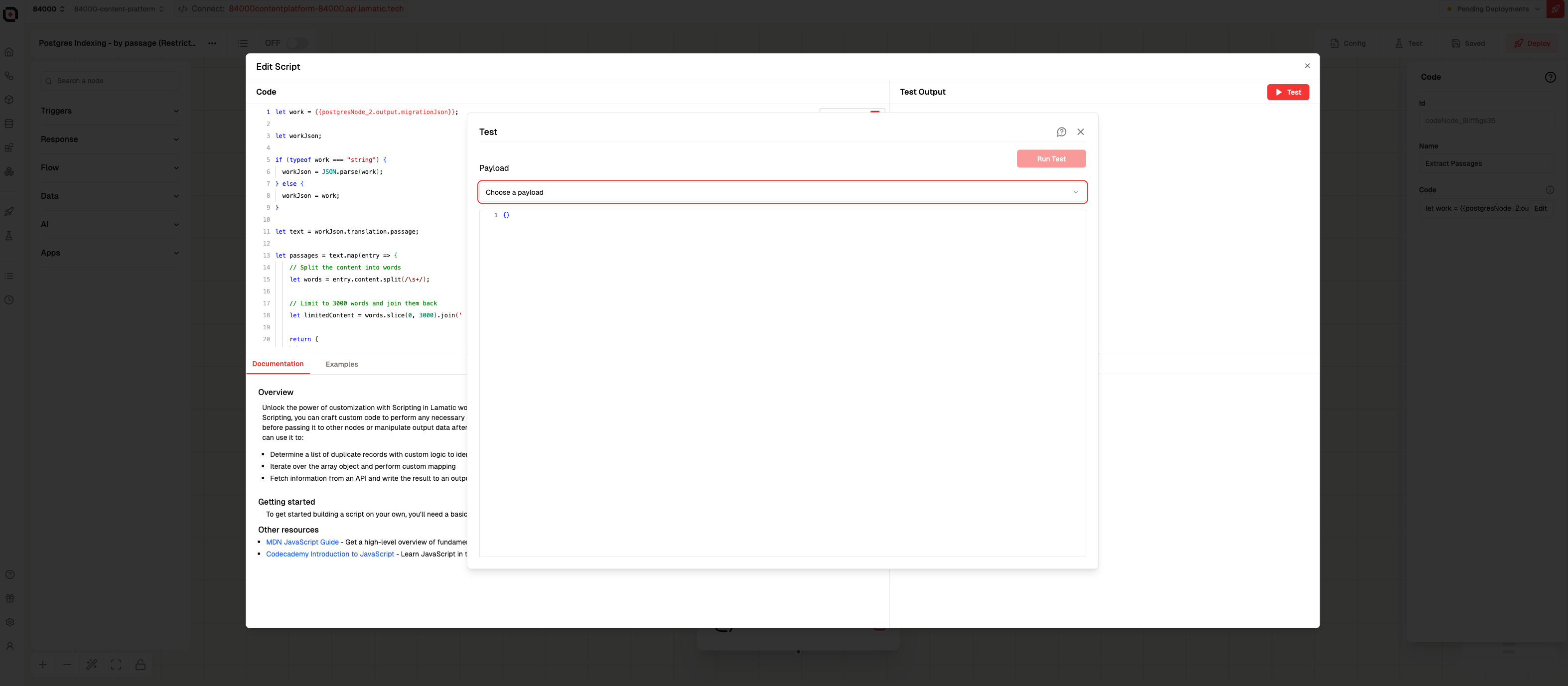 Test code or prompt doesnt show the same payload as the workflow test button